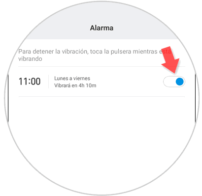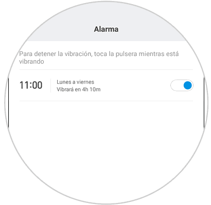 Cuando la guardes, la alarma va a aparecer guardada en el listado de la App Mi Fit.