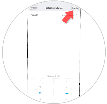 Desde aquí vas a poder configurar tanto la hora como los días de la semana en los que quieres que suene tu alarma configurada. Pulsa en la parte superior sobre el botón de "Guardar" para que los cambios queden registrados.