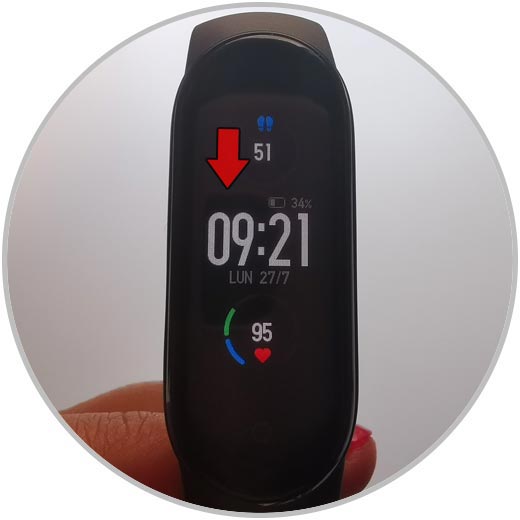 Para activar el modo No molestar en Mi Band 5 lo debemos hacer directamente desde la pulsera. Para ello lo primero es desplazar la pantalla de arriba hacia abajo.