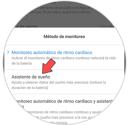 Entre las opciones disponibles, en este caso debes seleccionar “Asistente del sueño” para que la Mi Smart Band 5 recoja tus datos del sueño.