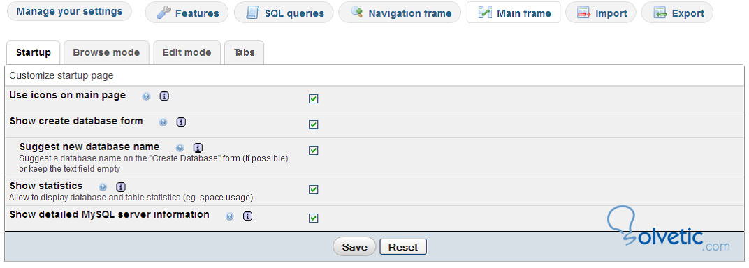 Sí las preferencias han sido cambiadas desde su valor por defecto, el checkbox o campo de data tendrá un color de fondo diferente y un ícono de papelera de reciclaje es mostrado en caso de que queramos eliminar esta partición. Luego de haber aprendido todas ó las vistas y ventanas así como las preferencias de usuario, ya estamos listos para crear nuestras base de datos y realizar múltiples operaciones con las mismas, en los próximos tutoriales explicaremos lo antes mencionado con todo lujo de detalle para que nos convirtamos en unos maestros de MySQL y phpMyAdmin.