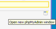 En ocasiones queremos comparar data de dos tablas distintas a la vez o tenemos otros requerimientos que simplemente abrir una ventana extra. En la parte inferior de casi cualquier página, tenemos un pequeño ícono para abrir otra instancia de phpMyAdmin con el panel actual con el cual estamos trabajando.