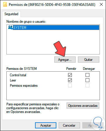 Damos clic en Agregar y añadiremos el grupo Administrador: