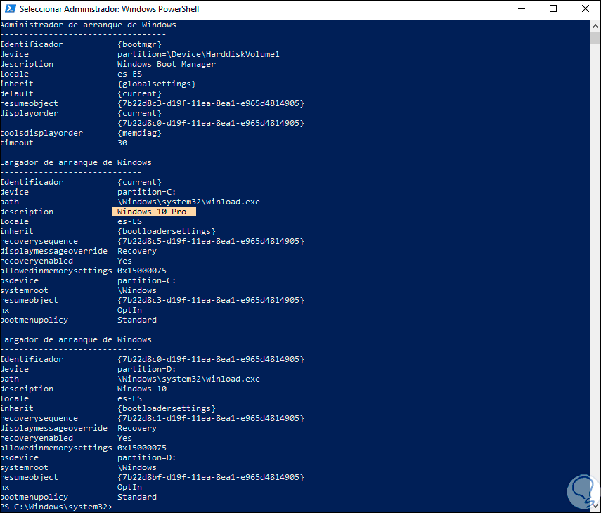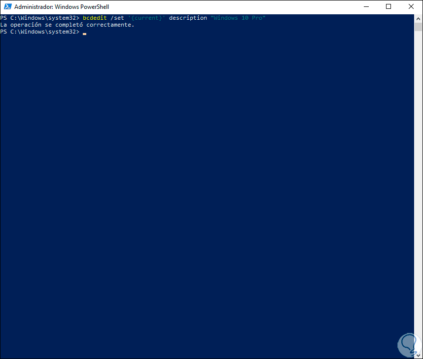 2. Cambiar nombre arranque dual Windows 10 PowerShell