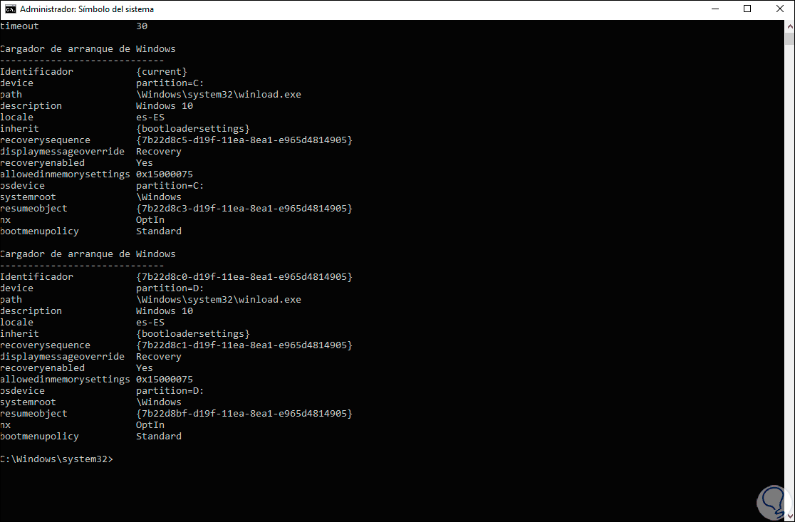 Para ello accedemos como administradores y en primer lugar ejecutamos el siguiente comando para listar la información de arranque: