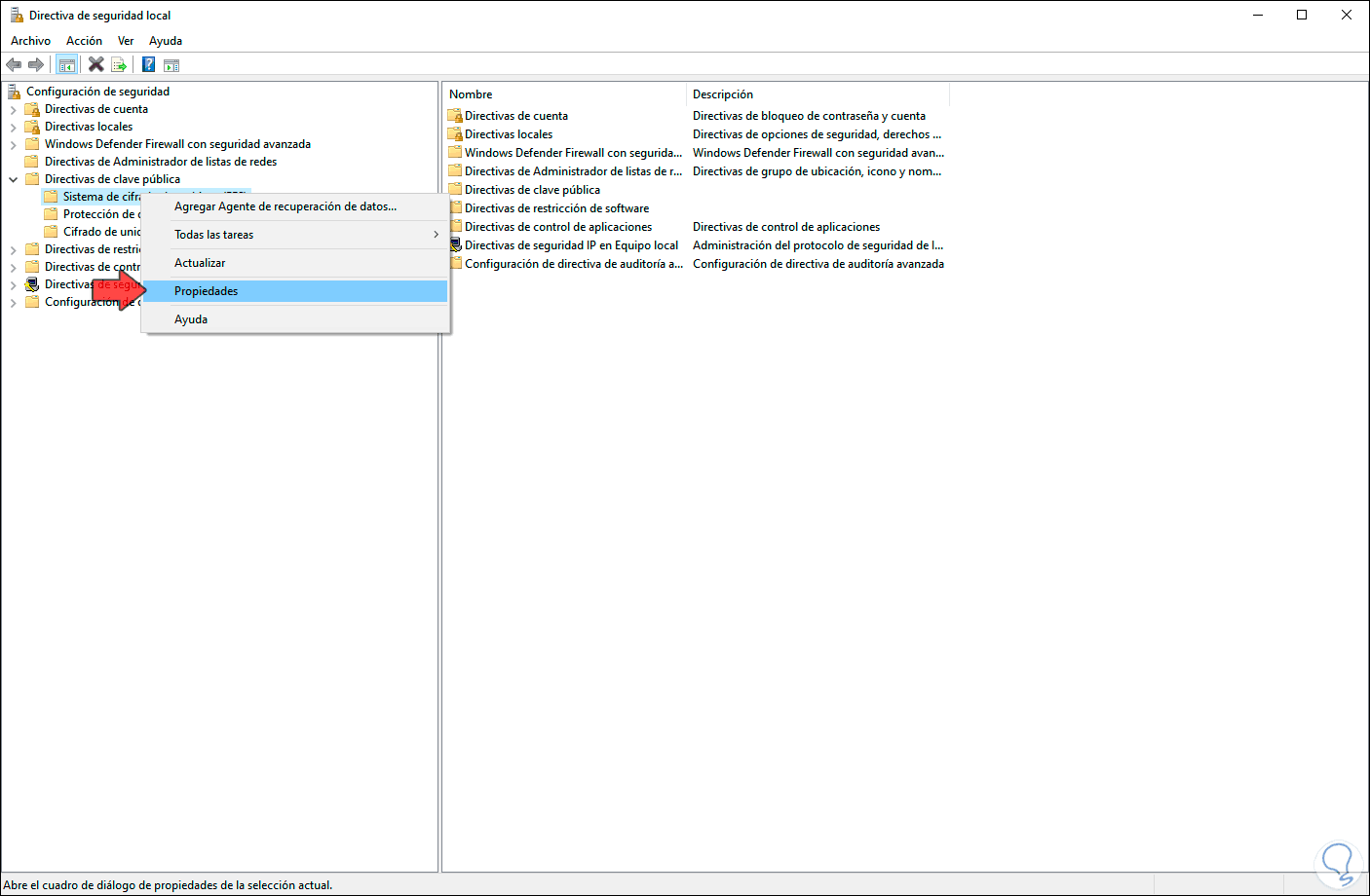 4. Activar o desactivar EFS Windows 10 desde Políticas Locales