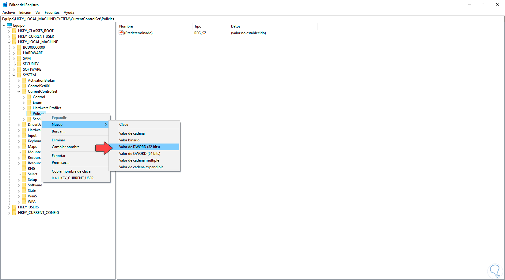 Damos clic en Aceptar y debemos configurar dos valores, en primer lugar, iremos a la siguiente ruta:
