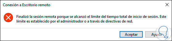 De esta manera la sesión del Escritorio remoto quedará desconectada en base al tiempo que ha sido definido.