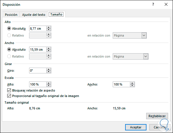 - Bloquear la función de relación de aspecto para evitar que la imagen se distorsione