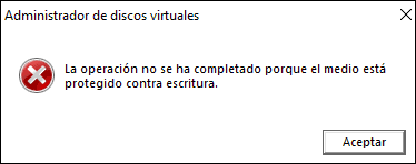 Como vemos los atributos se han aplicado de forma correcta, de esta manera si intentamos realizar alguna acción sobre este volumen veremos lo siguiente: