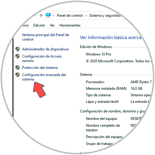 Damos clic en la línea “Configuración avanzada del sistema” en el costado lateral izquierdo e iremos a la pestaña “Opciones avanzadas”: