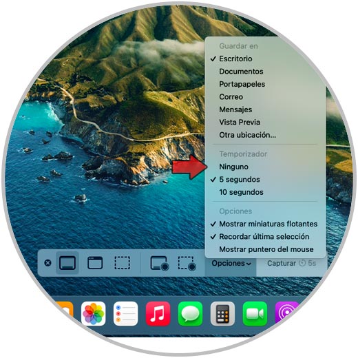 Esto va de acuerdo a la necesidad que como usuarios tengamos, disponemos de una serie de opciones para grabar nuestra pantalla en macOS Big Sur, para esto damos clic sobre “Opciones” y será posible: