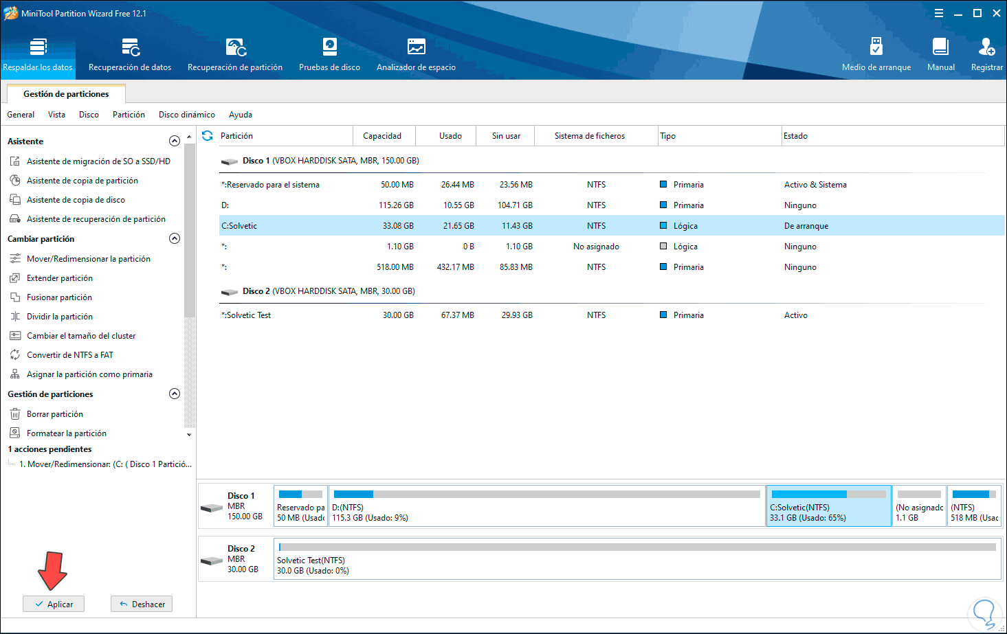 Después de esto veremos lo siguiente asociado a MiniTool Partition: