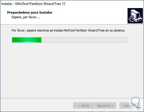 Damos clic en Aceptar y en la siguiente ventana solo dejaremos activa la casilla “MiniTool Partition Wizard Free”: