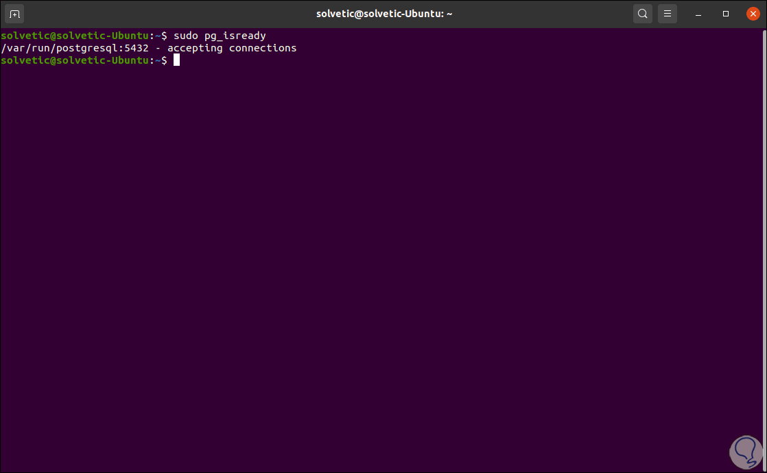 Vamos a validar que el servidor PostgreSQL puede aceptar conexiones de clientes, para ello ejecutamos: