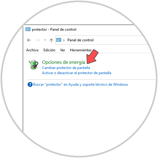 Damos clic en la línea “Configuración del protector de pantalla” para acceder a la configuración de este.