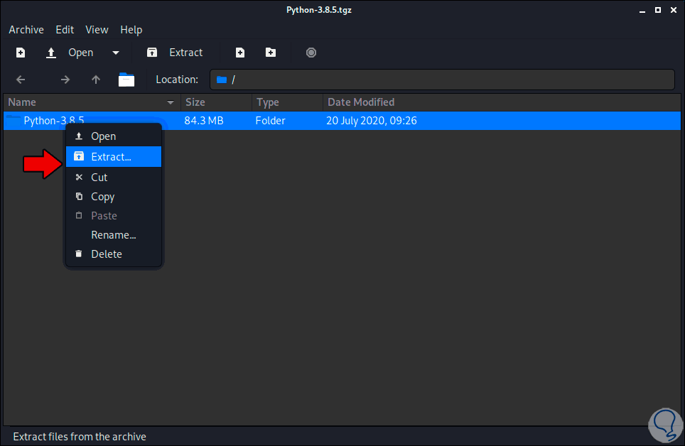 Una vez descargado vamos a la carpeta donde se ha descargado, damos clic derecho sobre el comprimido y seleccionamos “Extract”: