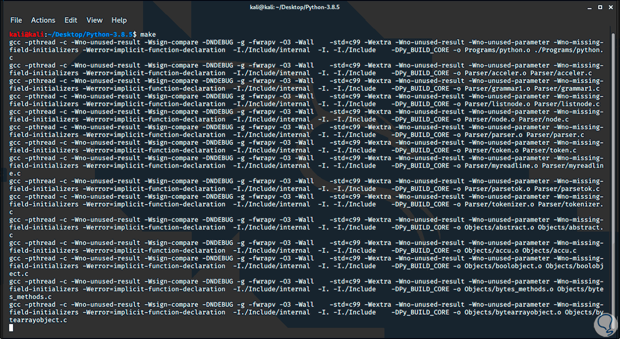 Ahora ejecutamos el comando “make” para preparar el entorno de Python: