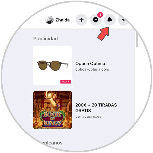 Lo primero que debemos hacer es entrar en Facebook desde el ordenador y pulsar sobre el menú de notificaciones.