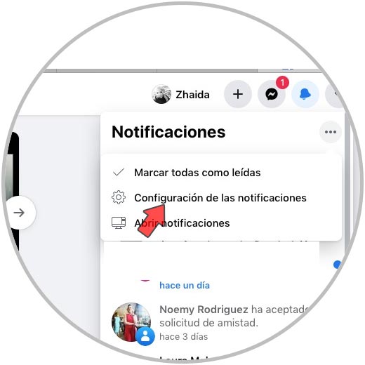 Aparecerá un menú emergente en el que debes seleccionar "Configuración de las notificaciones"