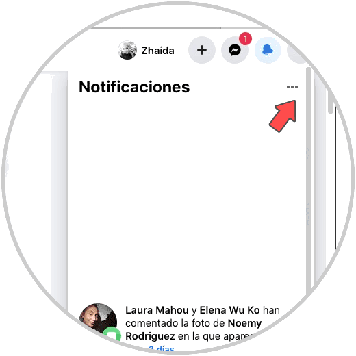 Ahora verás que aparecen las notificaciones. En la parte superior verás que hay tres puntos. Debes pulsar sobre ellos.