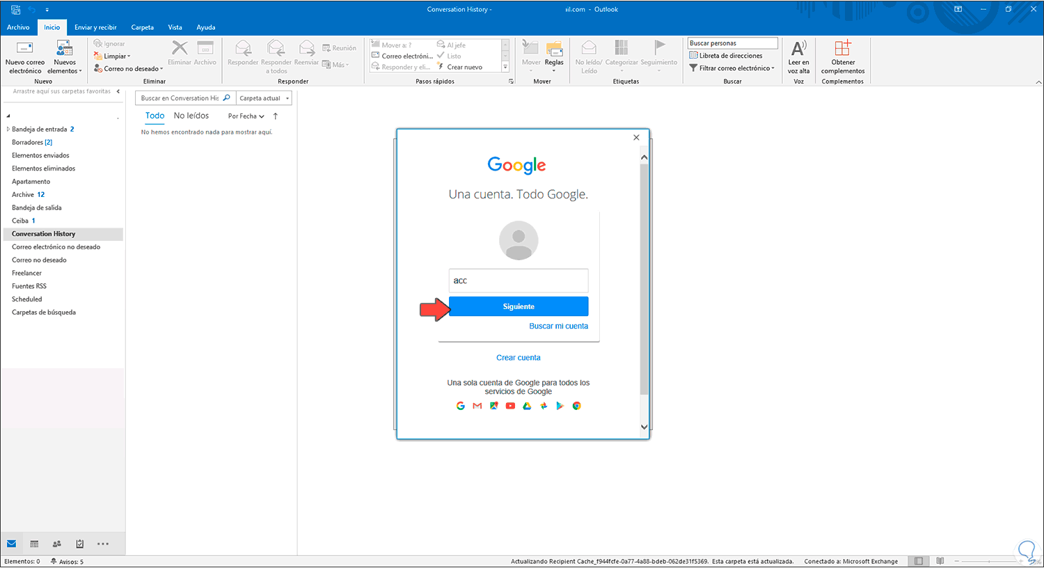 2. Configurar cuenta Gmail en Outlook