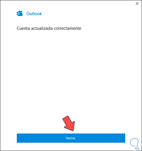 Cuando finalice veremos lo siguiente. Después de esto repetimos los pasos iniciales para vincular la cuenta de Gmail en Outlook usando IMAP.