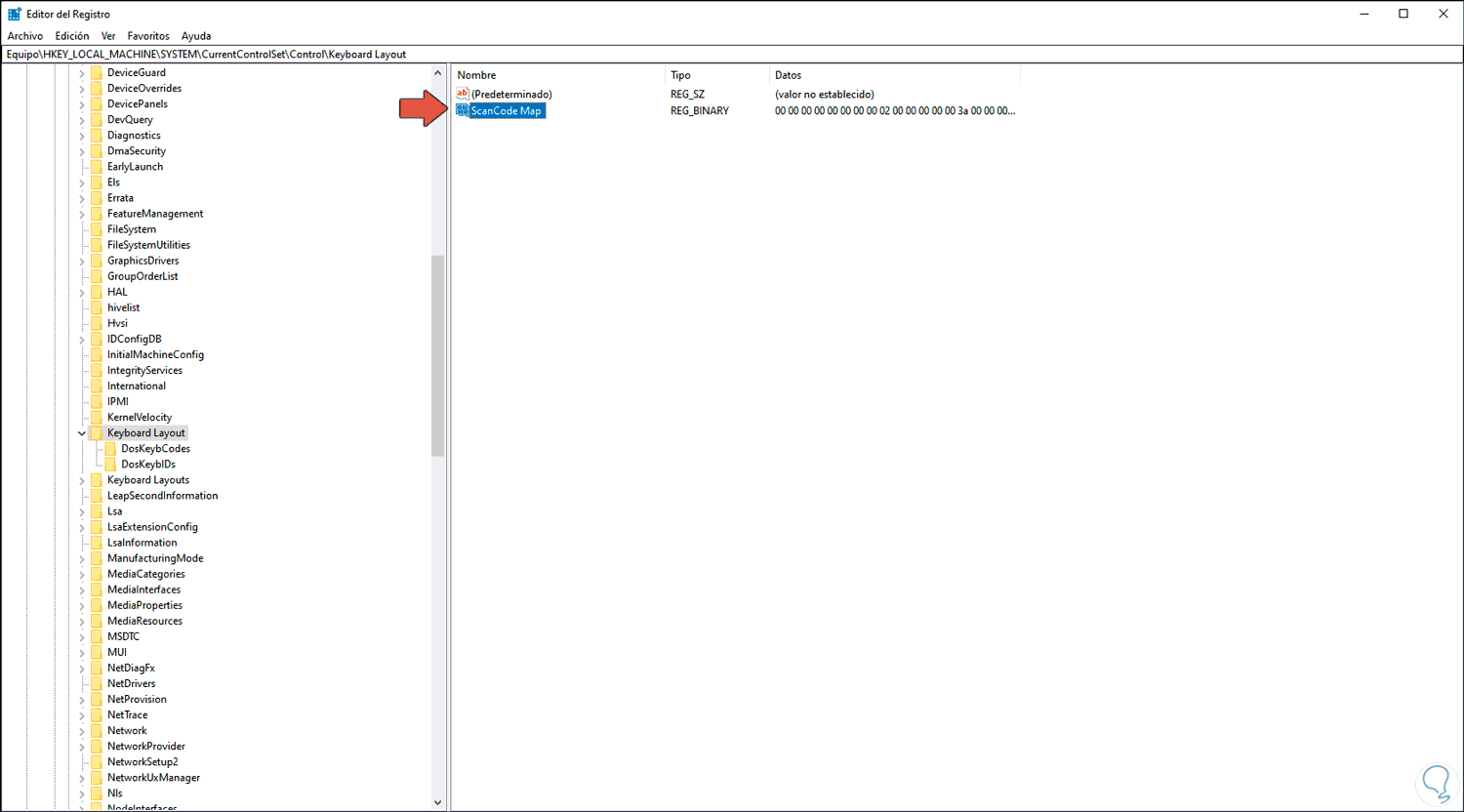 Damos doble clic sobre este valor binario e ingresaremos lo siguiente: