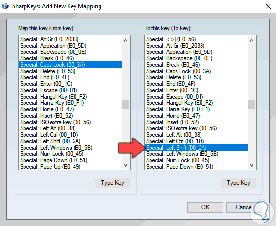 - En el campo “To this key” seleccionamos “Special: Left Shift”