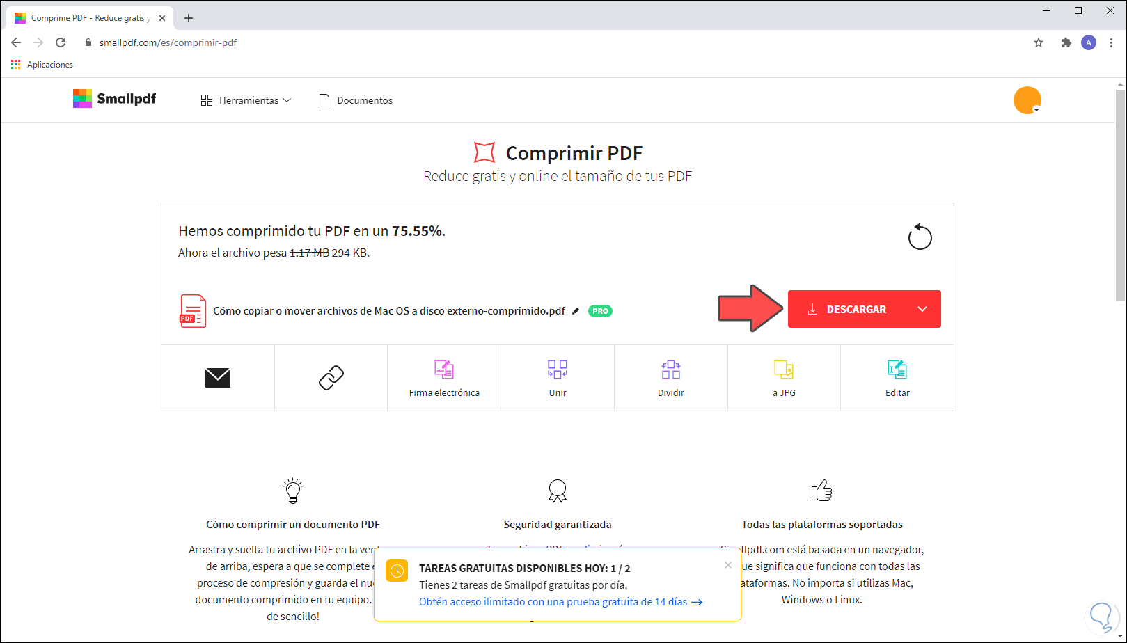 Veamos cómo comprimir nuestros archivos PDF con Smallpdf.