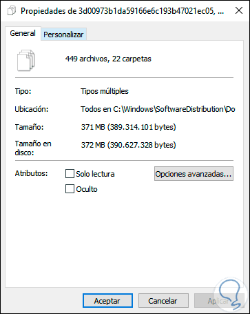 En esta carpeta encontramos todos los archivos asociados a las descargas de actualización del sistema operativo: