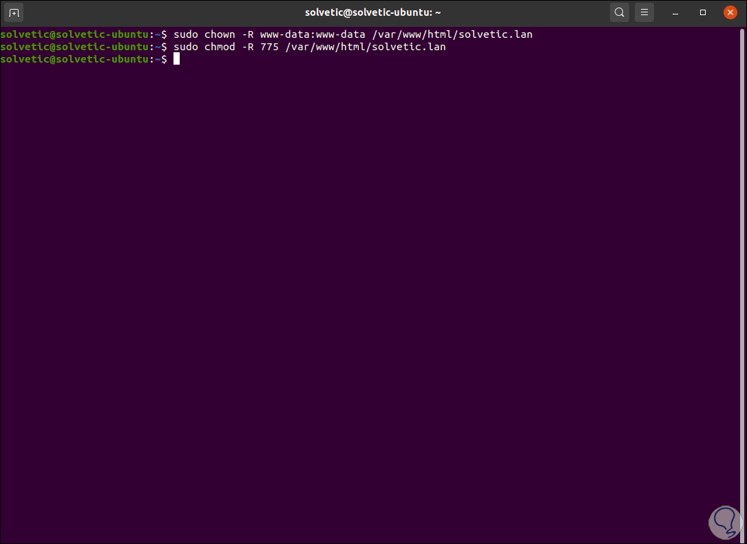 sudo chown -R www-data:www-data /var/www/html/solvetic.lan sudo chmod -R 775 /var/www/html/solvetic.lan
