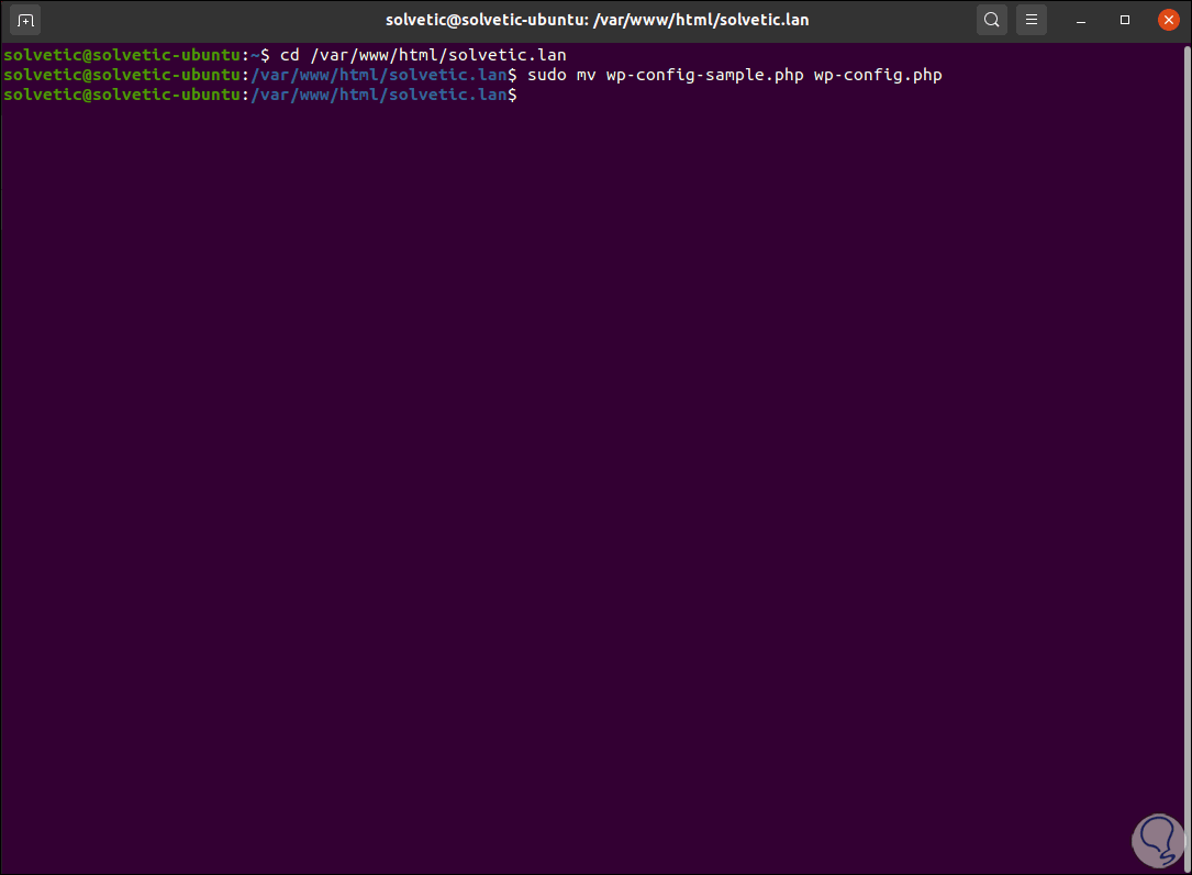 cd /var/www/html/solvetic.lan sudo mv wp-config-sample.php wp-config.php
