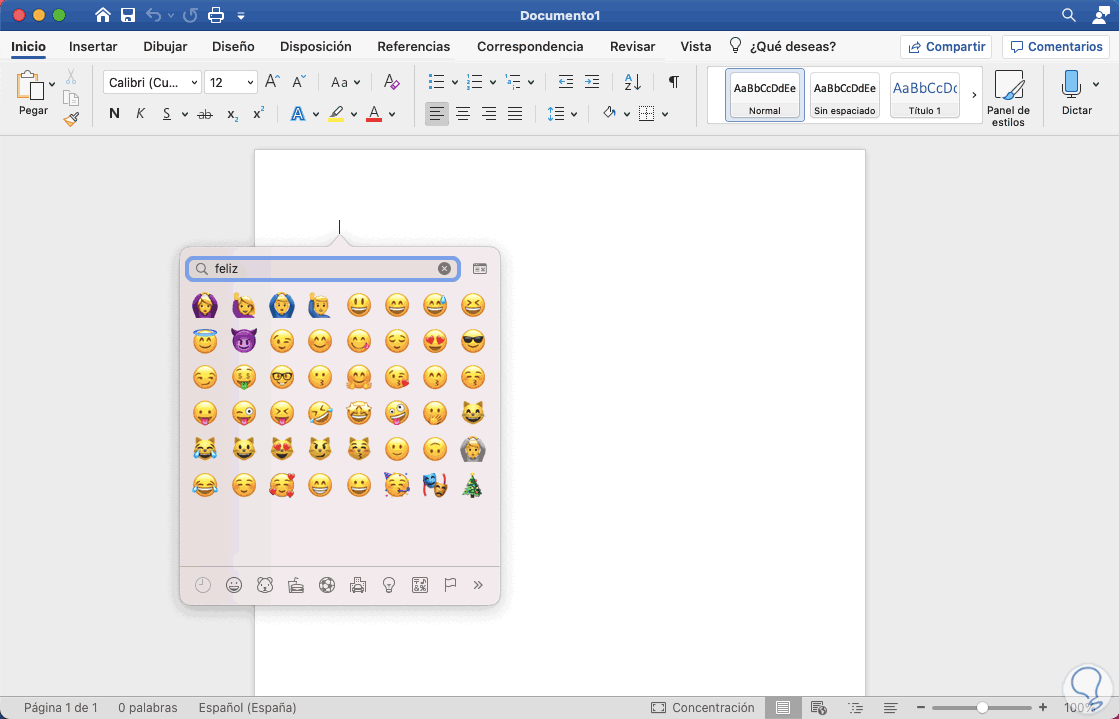 2. Cómo poner un Emoji en Word 2019, 2016 en macOS