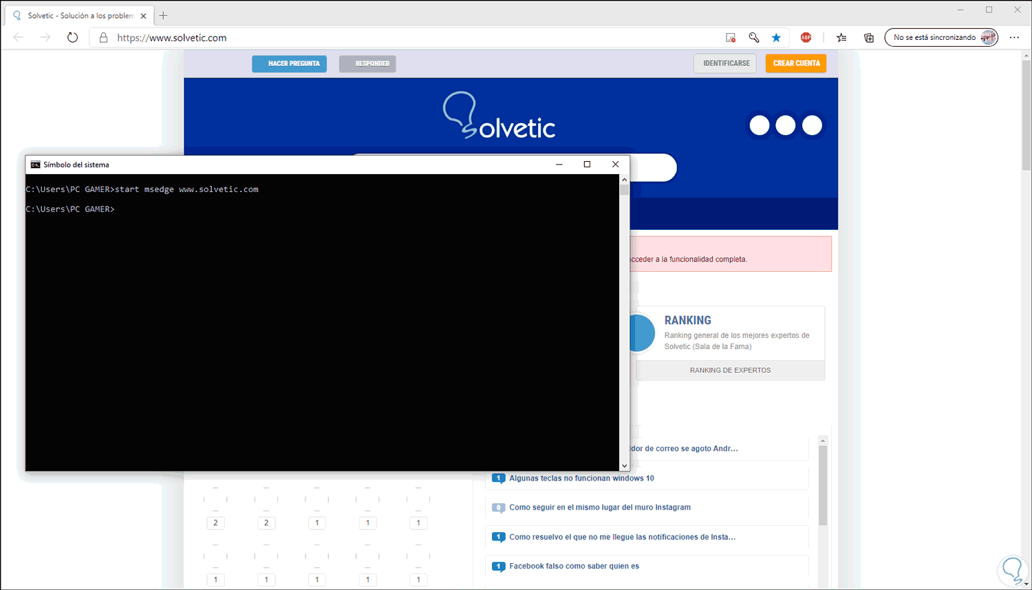 2. Abrir una web en Microsoft Edge desde CMD Windows 10