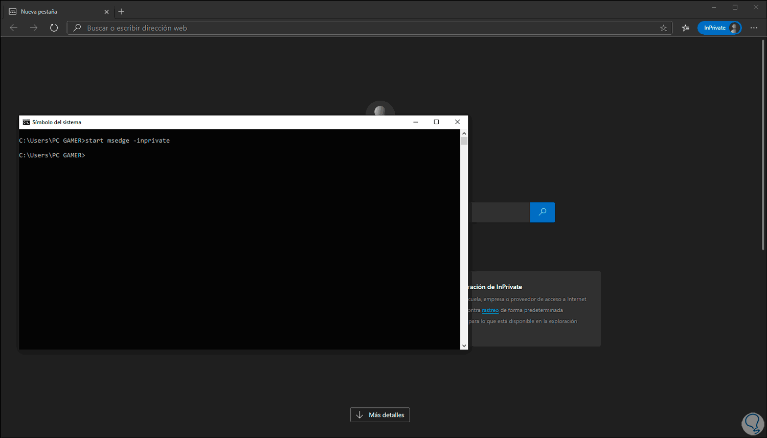 Podemos iniciar Microsoft Edge en este modo incognito con el siguiente comando: