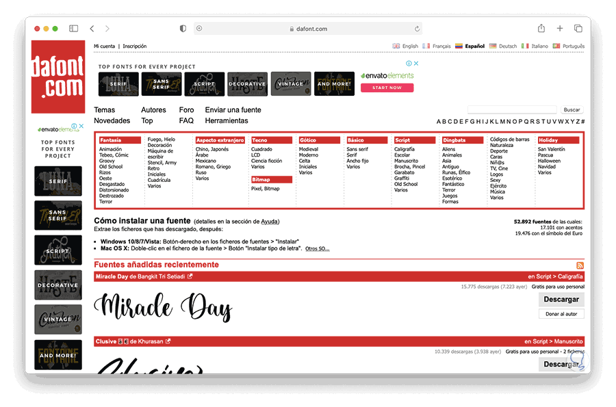 Lo primero es ir al sitio oficial de Dafont en la siguiente dirección: