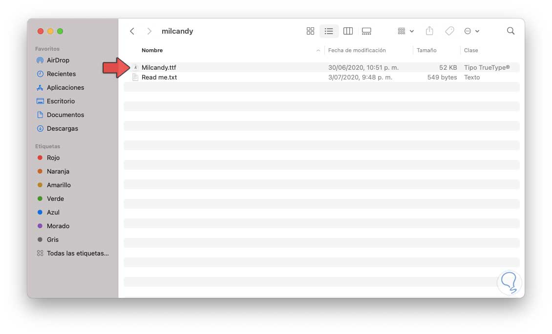 Una vez descargada abrimos la carpeta que se ha descargado y allí veremos la fuente en formato TTF el cual es el formato para todas las fuentes en macOS: