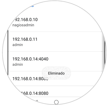 Pulsamos sobre el ícono de papelera en la parte superior y seremos redireccionados de nuevo a la sección de contraseñas, pero observaremos la leyenda “Eliminado” haciendo referencia a que esa contraseña ha sido borrada de Google Chrome en Android: