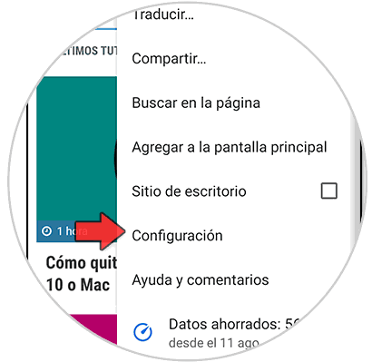 El primer paso es acceder a Google Chrome en Android y liego pulsamos sobre el icono de tres puntos verticales y en el listado desplegado seleccionamos “Configuración”: