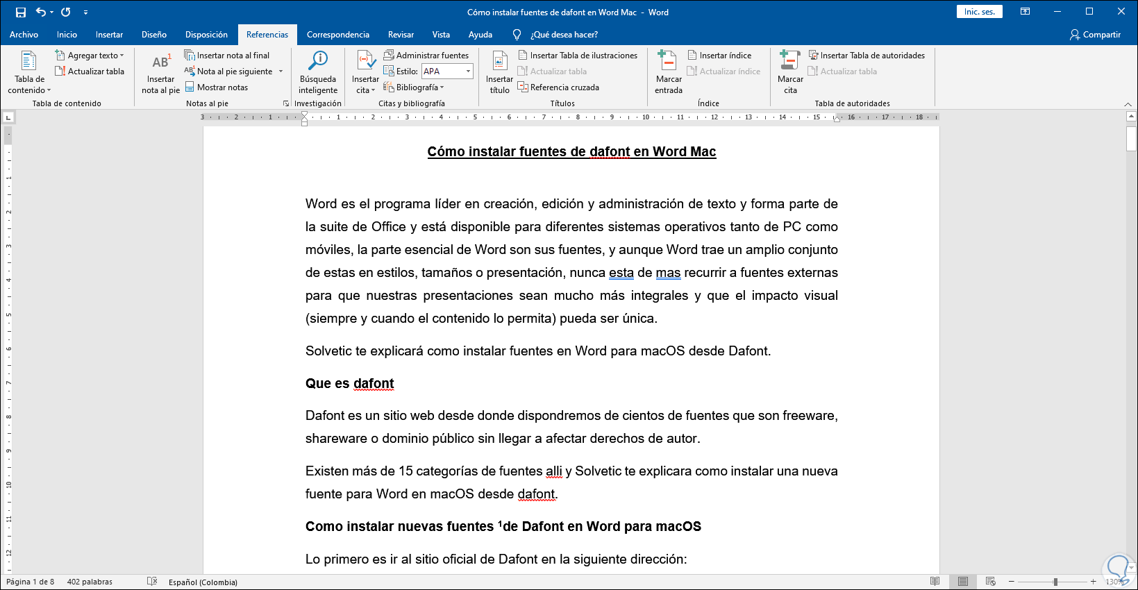Solvetic te explicará cómo insertar notas al pie de página en Word 2019.
