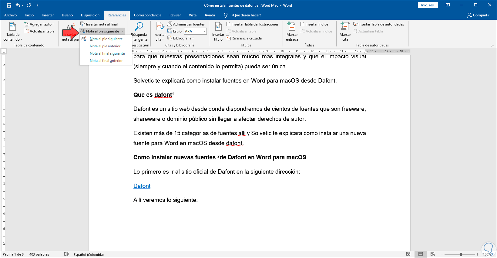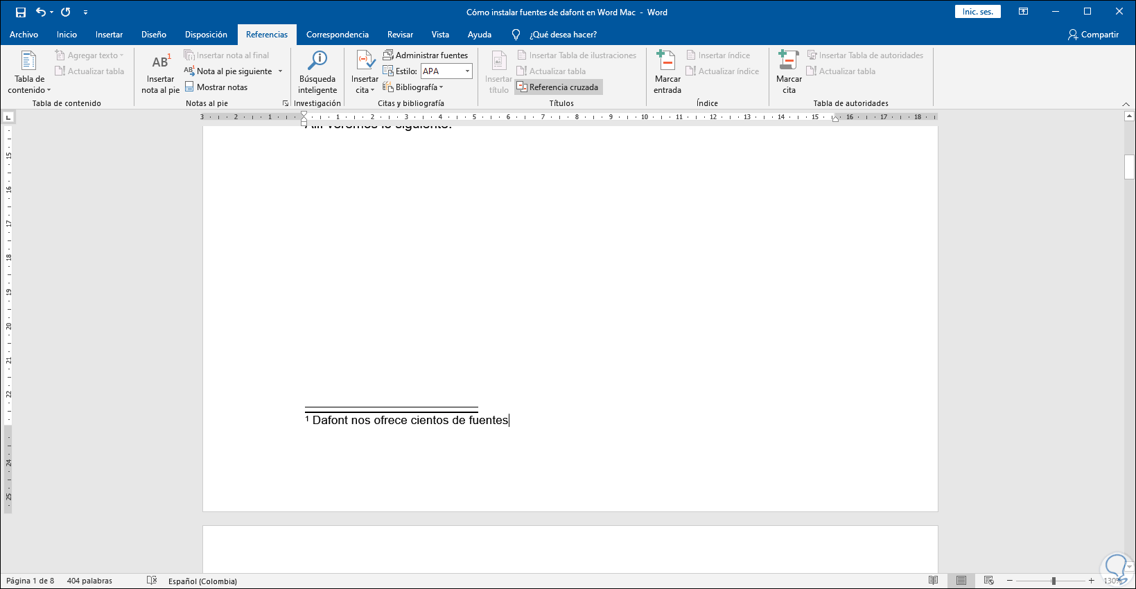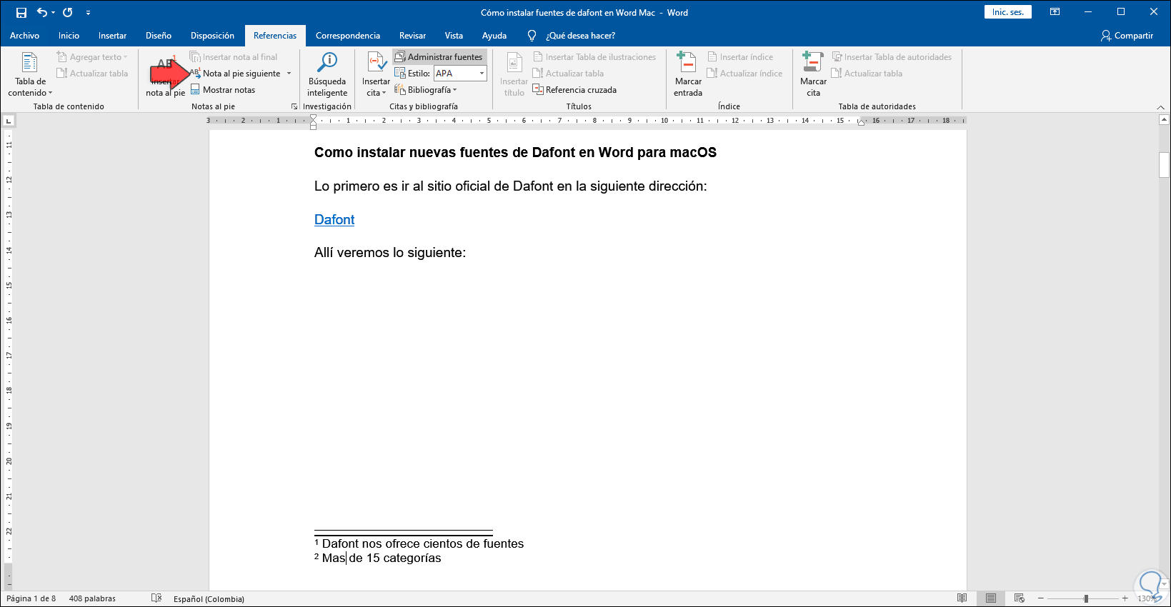 Podemos dar clic en “Mostrar notas” y esto nos llevará a la sección de notas al pie: