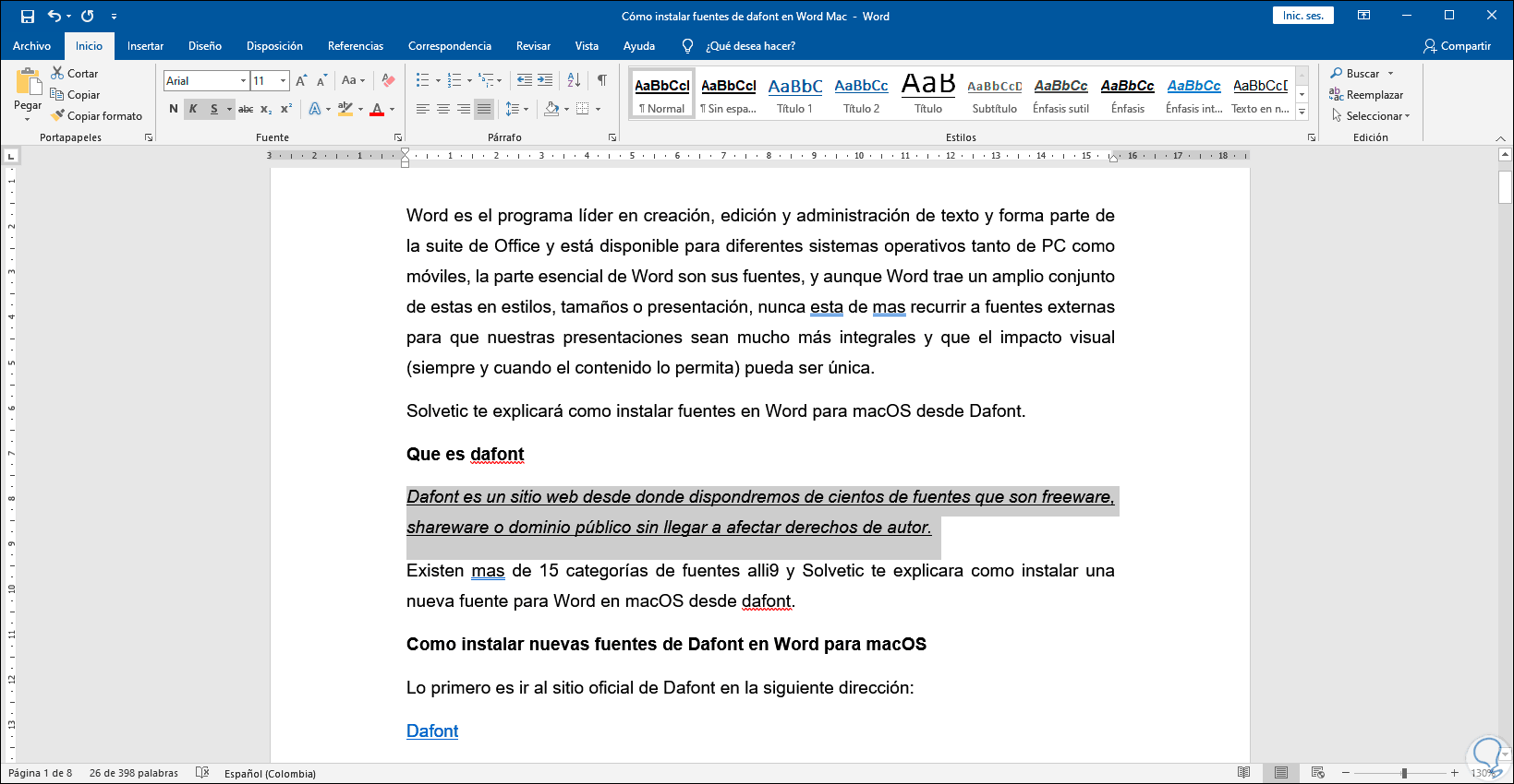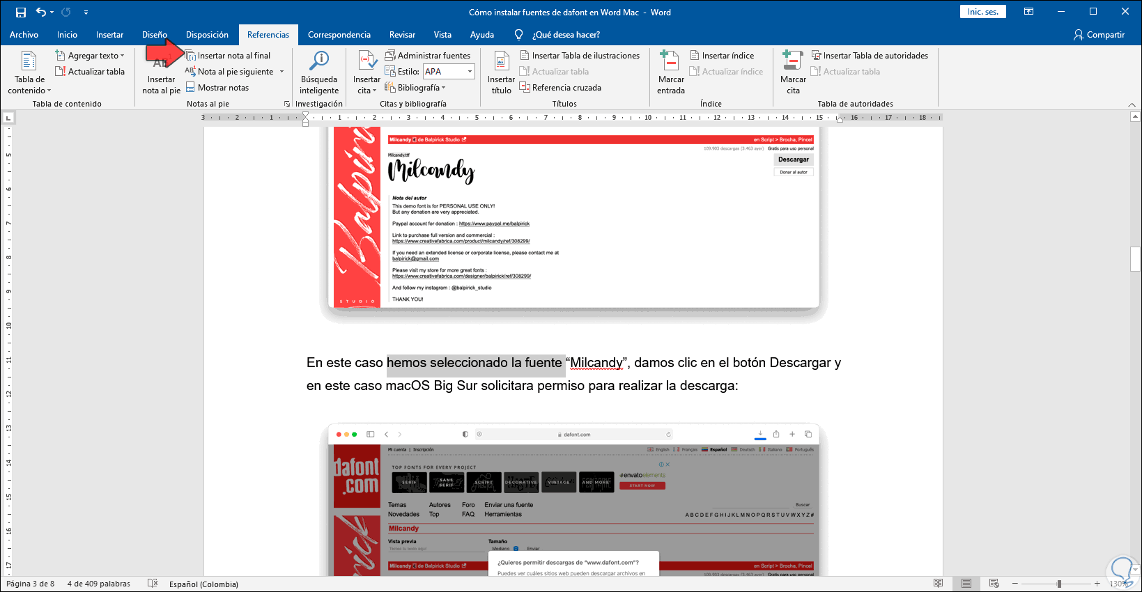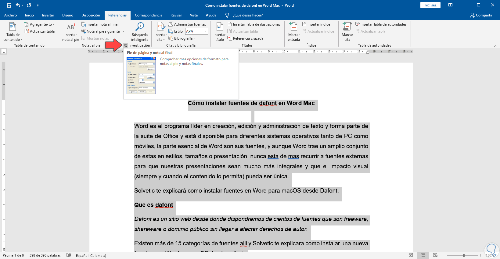 Podemos dar clic en “Mostrar notas” y esto nos llevará a la sección de notas al pie: