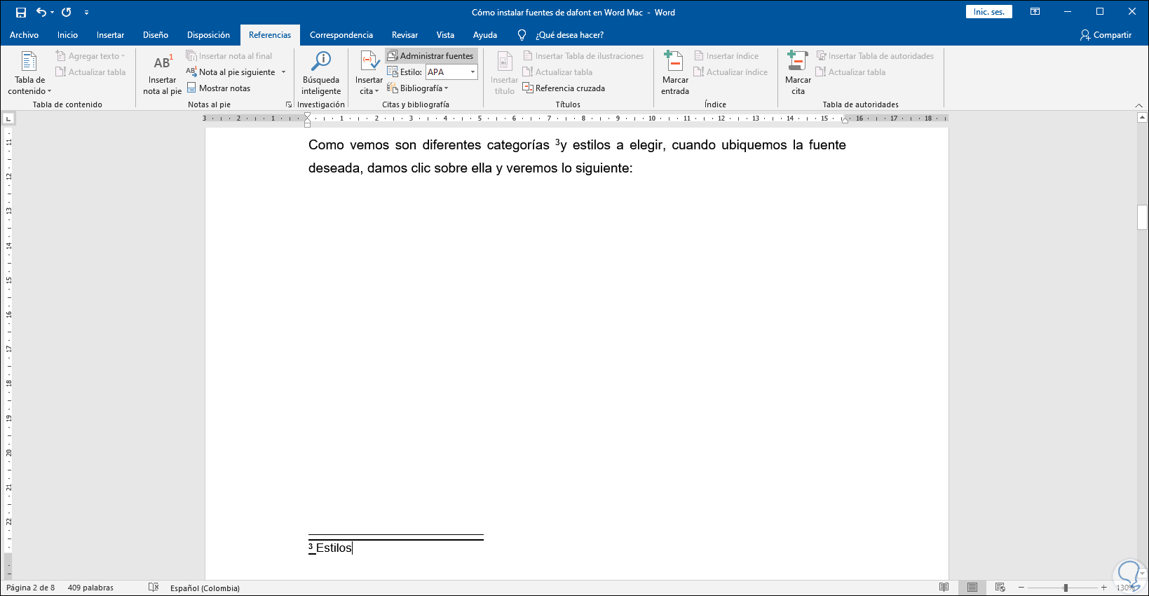 Al dar clic allí podemos ver que la nota y su estilo de inserción estarán al final del documento: