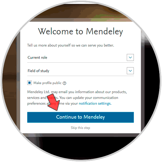 Damos clic en “Continue to Mendeley” y esto abrirá el sitio web de Mendeley para trabajar desde alli: