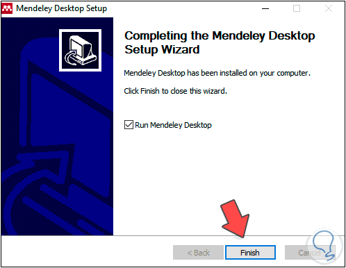 Una vez este proceso finalice veremos lo siguiente. Allí podemos ejecutar inmediatamente la aplicación Mendeley.