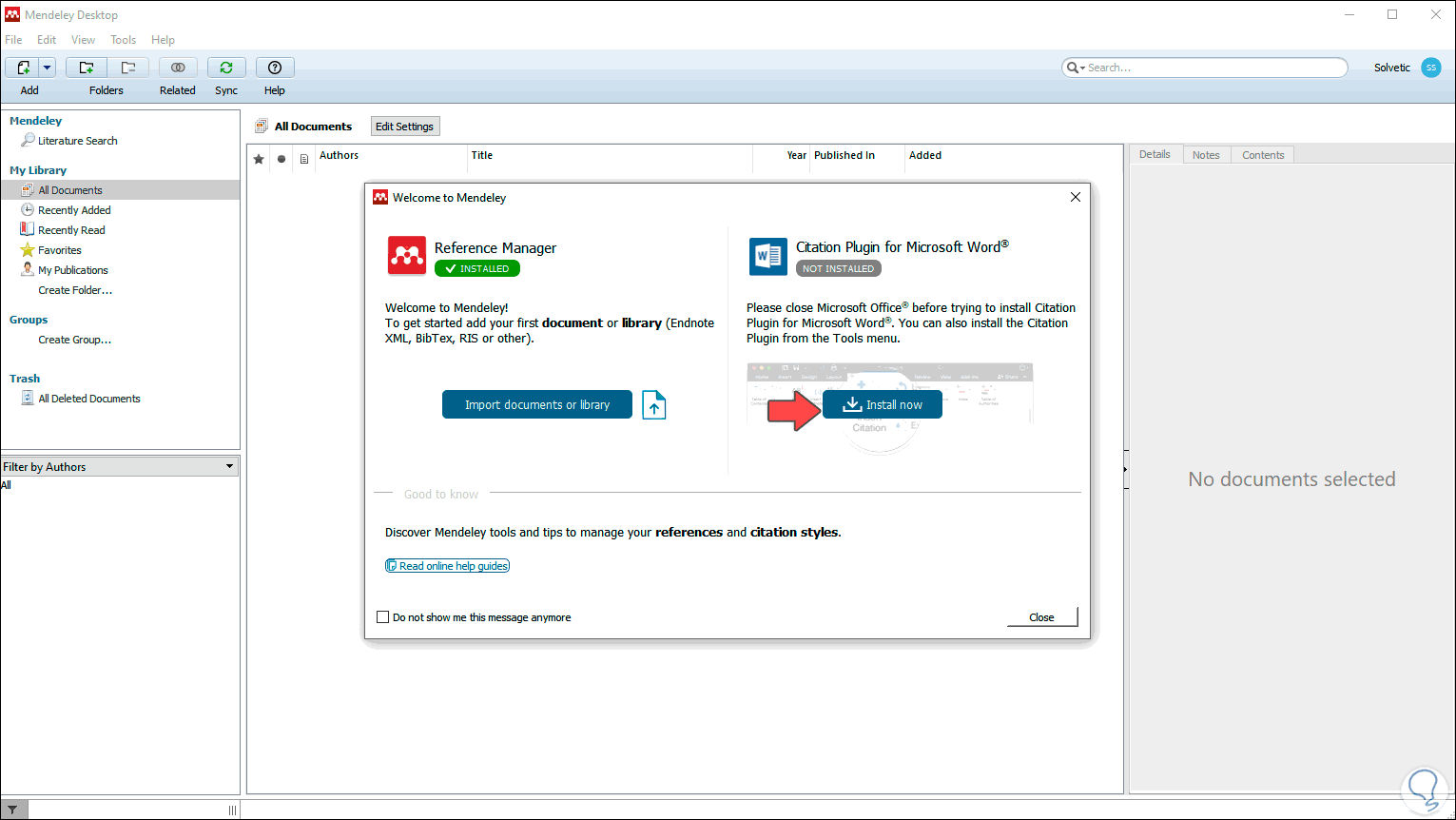 Veamos como instalar Mendeley en Word 2016 o 2019.
