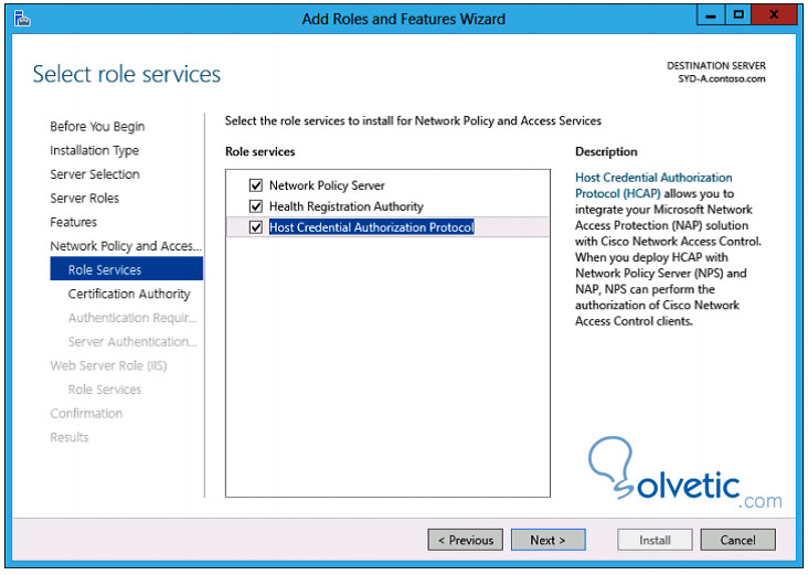 Al hacer el deploy del NPS podemos elegir entre instalar el Health Registration Authority (HRA) o instalar el Host Credential Authorization Protocol (HCAP). El HRA nos permite emitir certificados y el HCAP nos permite integrarnos con redes Cisco.