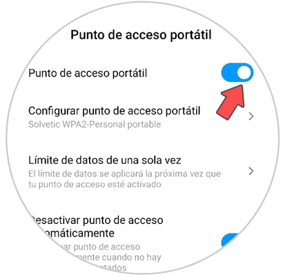 Finalmente activa la pestaña "Punto de acceso portátil" para que sea visible.