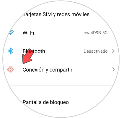 Lo siguiente que debes hacer es acceder a "Conexión y compartir"